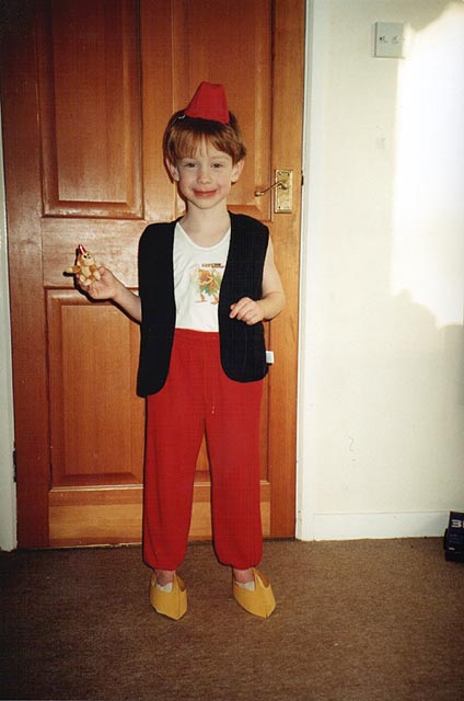 Dan off for an Arabian Night as Aladdin, 8th Jan 2000 |