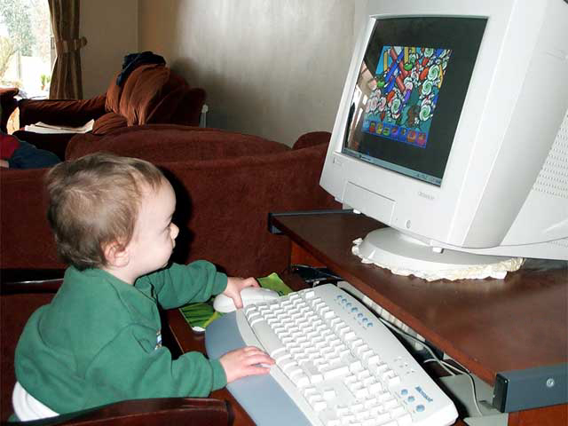 Rob on the computer, 18th Mar 2001 |