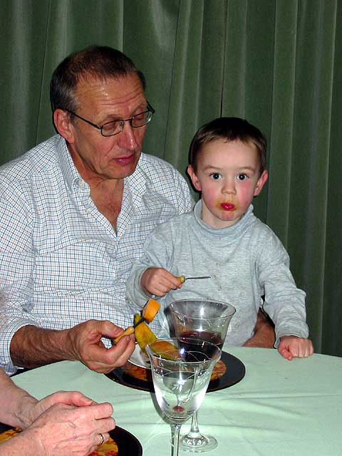 Rob scoffs his granddad's desert, 30th March 2003 |
