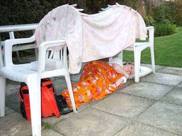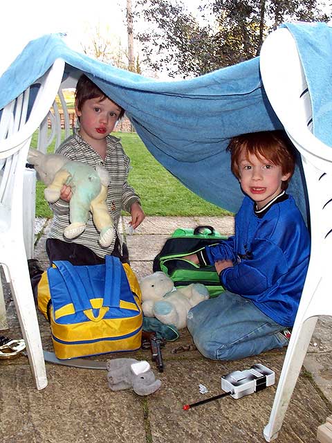 Playing "Tents" in the garden, 5th May 2001 |